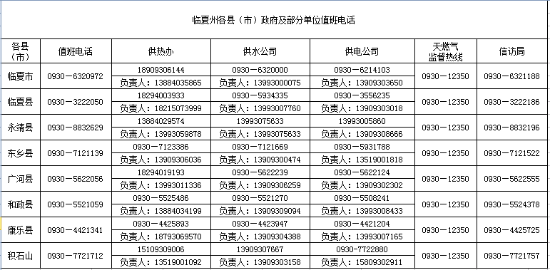 临夏州各县(市)政府及部分单位值班电话